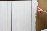 Er is ook mdf met een al witte toplaag. Deze is erg hard en moeilijk te schuren. Dat doen we met de hand met korrel 240. Eerst goed schoonmaken met een ontvetter. Schilder de kopse kanten zoals hierboven vermeld. Schilder de witte kanten met een kunstof primer voor de hechting. Gewone grondverf zal hier niet goed op hechten. All-Ground op waterbassis is hier een uitstekende verf voor.